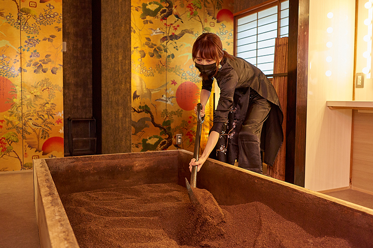 (“Hacco Bath” …. where you can enjoy a rice bran bath heated by the action of microbes fermenting.)